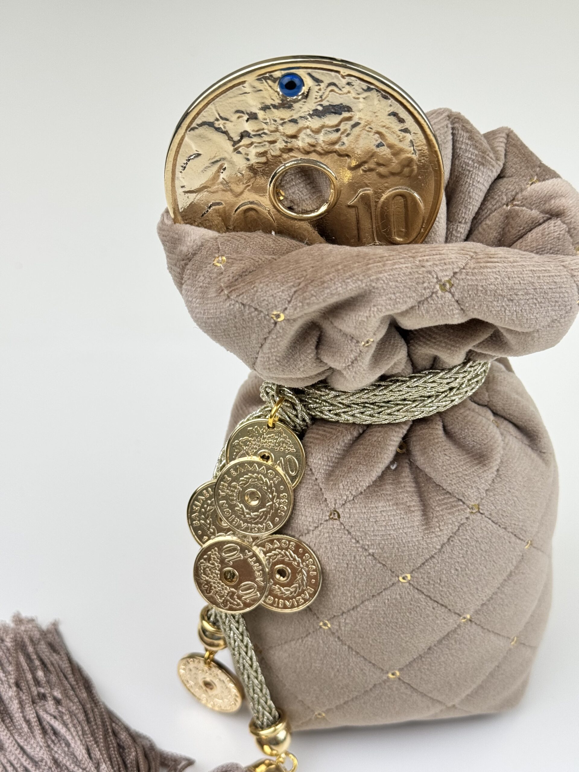 Διακοσμητικό βελούδινο πουγκί με δεκάρα – Dimitressi