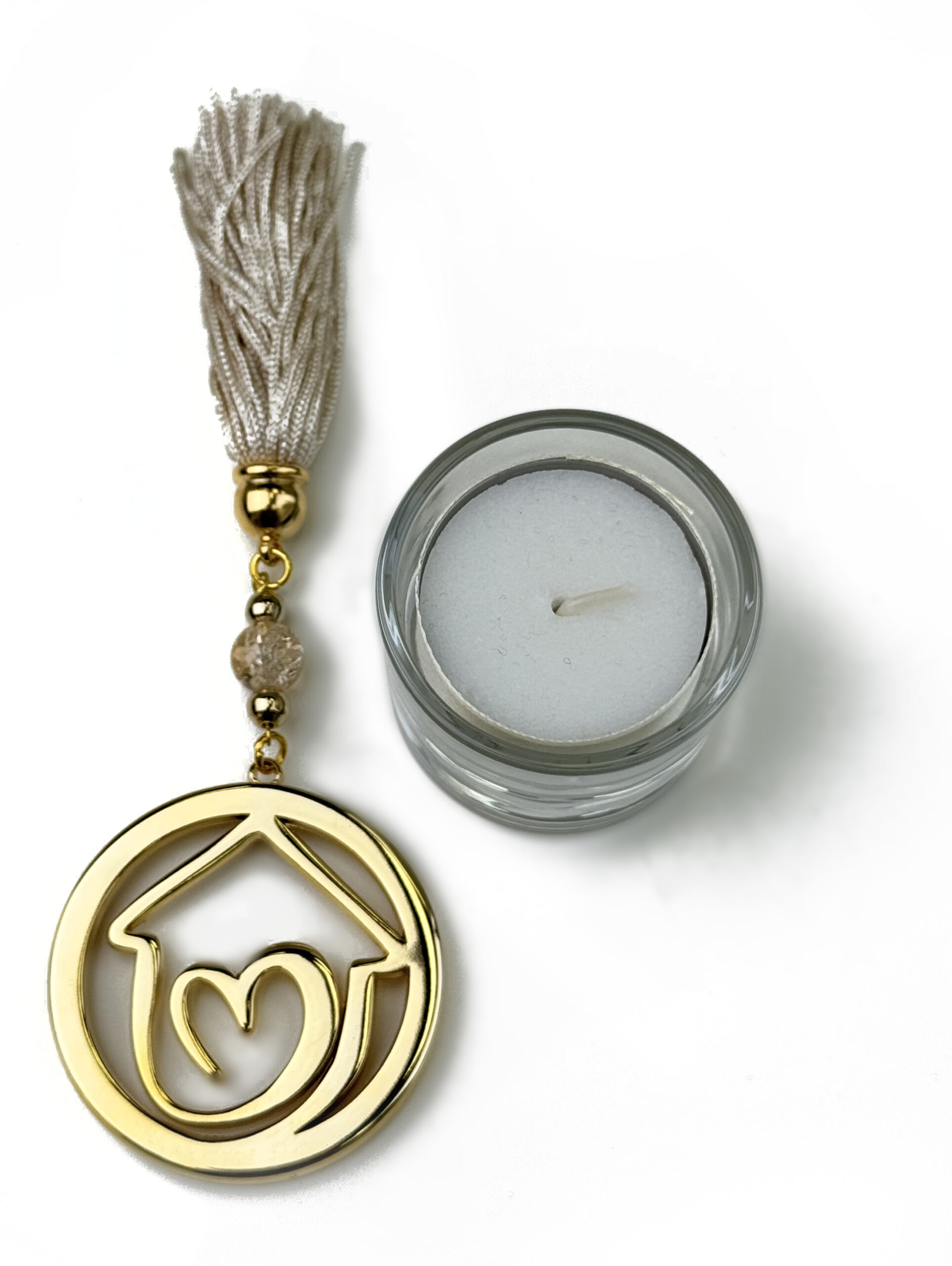 Tealight with gold plated house cap